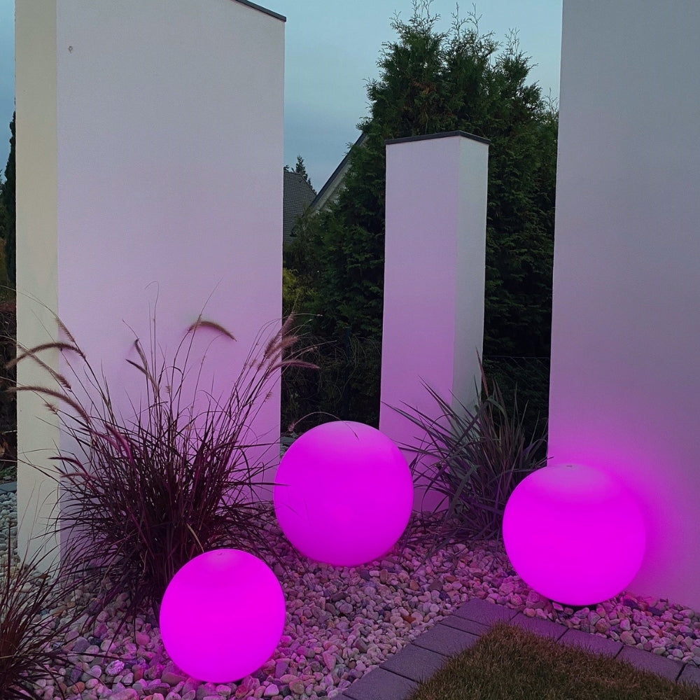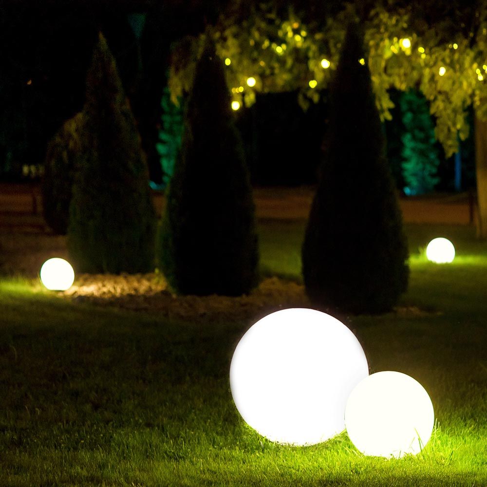 The Globe set contains three globe lights in 30, 40 and 50 cm and creates a harmonious atmosphere in the garden.
