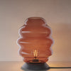 The s.luce Echos table lamp impresses with its handmade, mouth-blown glass in a striking, wave-shaped silhouette.