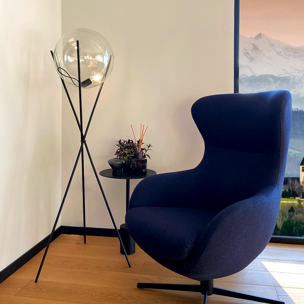 Du verre soufflé à la bouche, suspendu sur un trépied filigrane - l'Orb Axis allie l'art artisanal à la légèreté moderne. Un objet lumineux qui crée une atmosphère et remplit les pièces de personnalité.