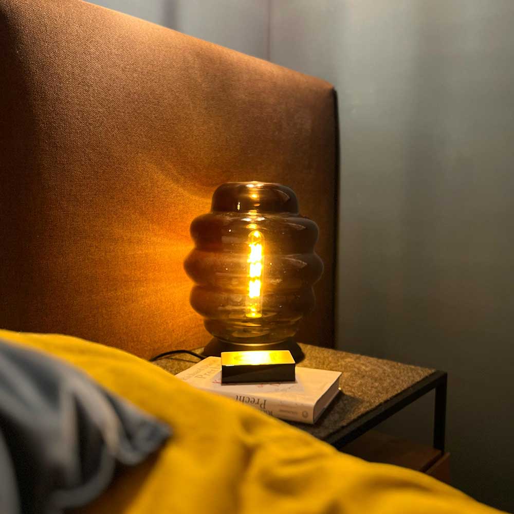 Qu'elle soit fumée, transparente ou brune, la lampe de table s.luce Echos fait une déclaration stylée dans chaque couleur et s'adapte parfaitement au style de ton intérieur.