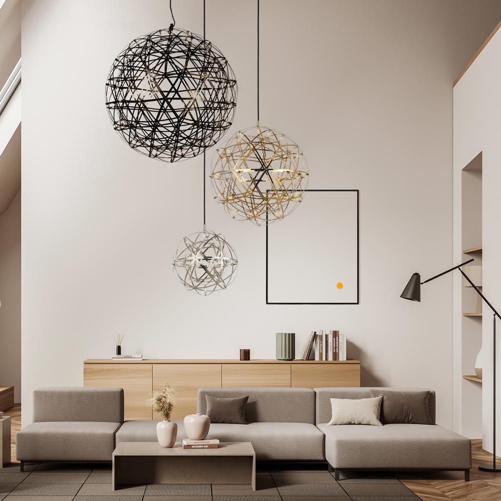 Die s.luce Atom Pendelleuchte ist in 30 cm, 50 cm und 70 cm Durchmesser erhältlich – von kompaktem Lichtakzent bis hin zum eindrucksvollen Design-Statement für große Räume.