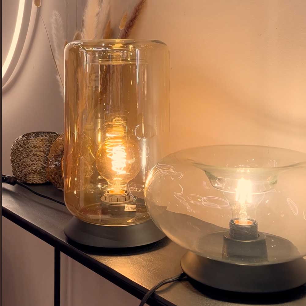 Amber sorgt für besonders warmes, goldfarbenes Licht – perfekt für gemütliche Räume. Rauch wirkt etwas kühler und sehr edel, während Klar das Leuchtmittel stärker betont und für moderne Leichtigkeit sorgt.