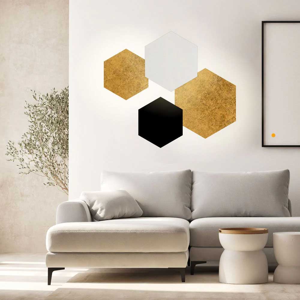 Erhältlich in Blattgold, Weiß oder Schwarz – die Hive vereint stilvolles Design mit individueller Farbwahl und wird so zum Highlight an jeder Wand.