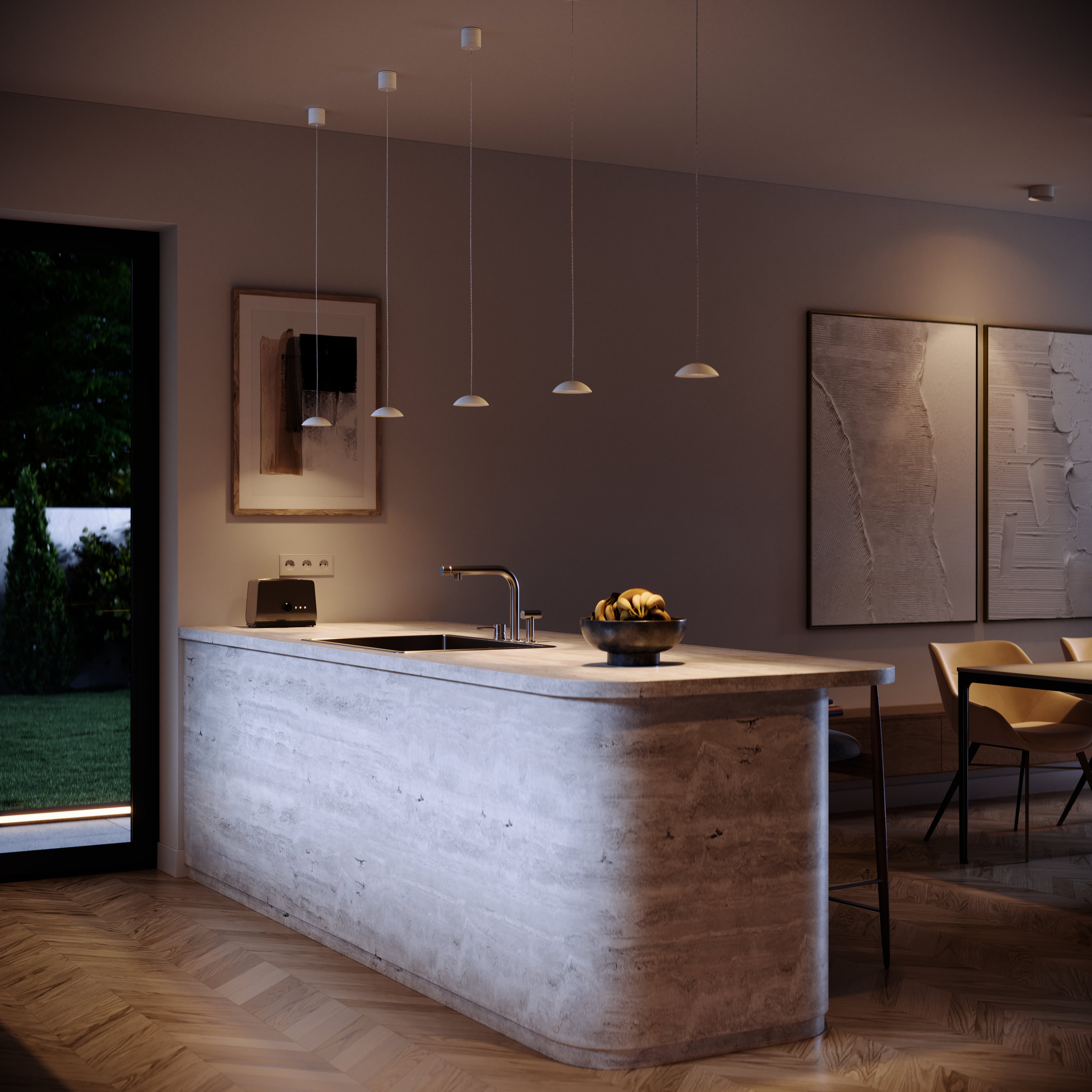 In Reihe gehängt erzeugen sie eine klare, lineare Lichtwirkung, ideal für lange Tische oder Theken.